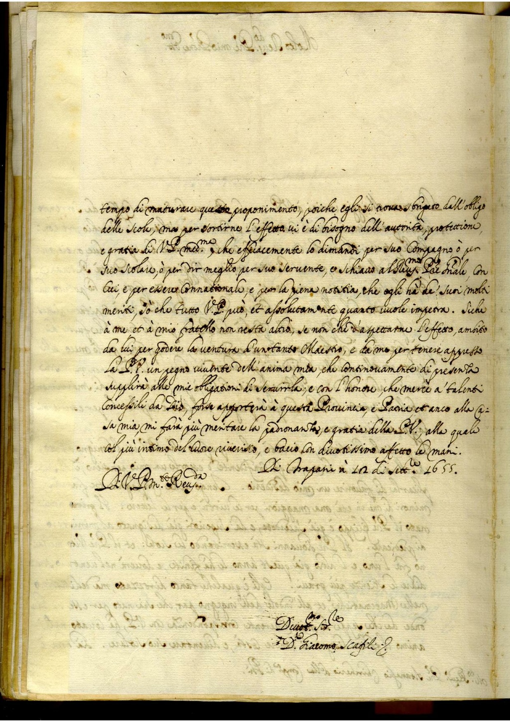 Di Trapani à 12 di settembre 1655.