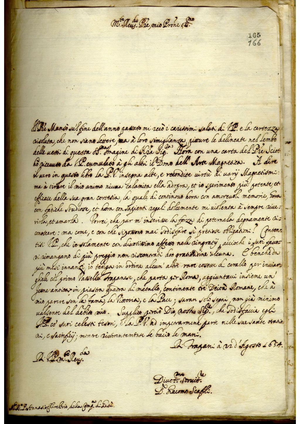 ho (?) da Vostra Paternita cumular(?) a gli alti il Dono dell Arte Magnetica. A dire