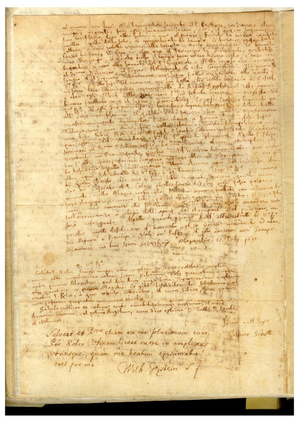 maximè in tuis s.simis sacrificijs. Moguntiae 15. Julij 1655.