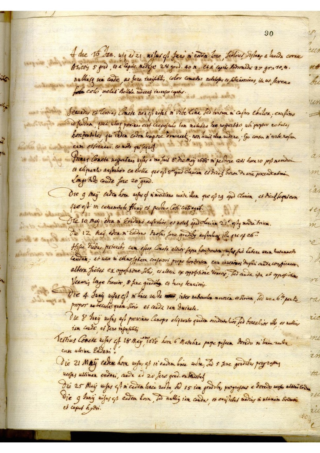 Primus Cometa vespertinus visus ā me fuit 8 die Maij 1665 in pectore Cæti hora 10 post meridiem