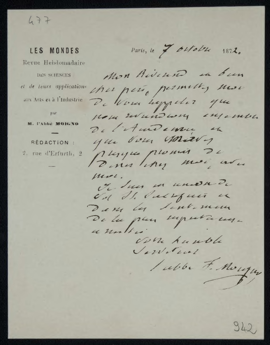 Paris, le 7 octobre 1872