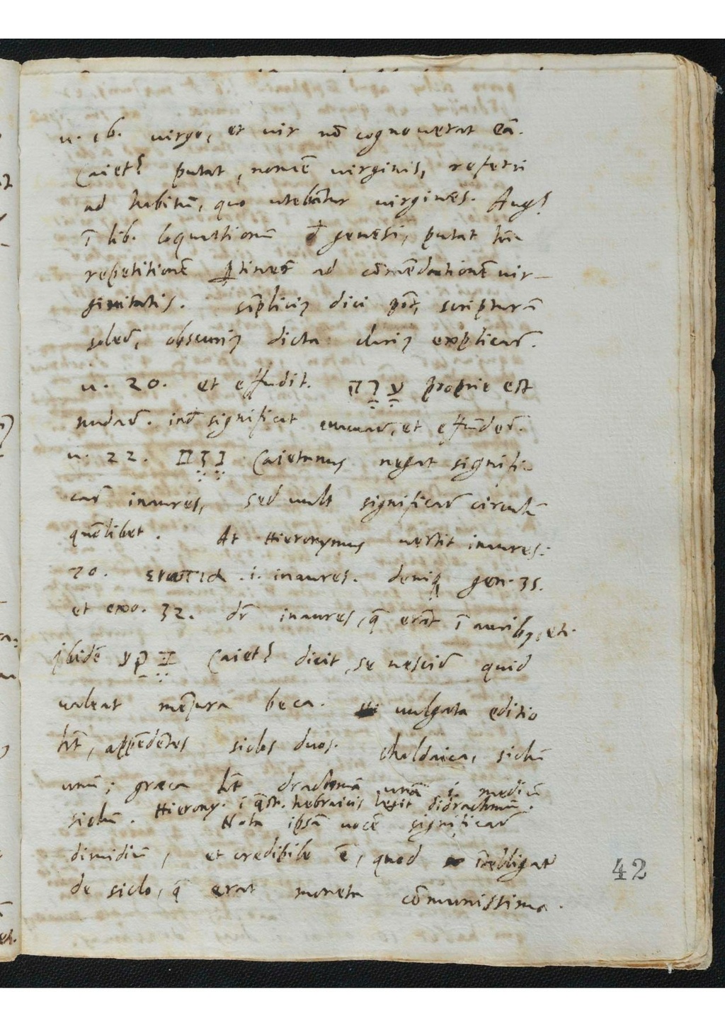 - ↑ nisi ad ampliorem expressionem adiunctum sit vir non cognovit ipsam, suspicor virginis nomine habitum innuptarum virginum significari, Catena in Genesim, 264r.