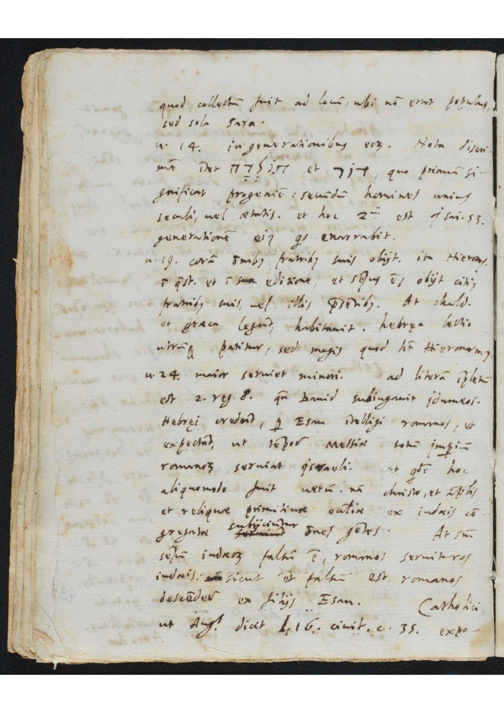 2. Quod in extremo huius capituli iuxta Septuaginta legimus, contra faciem omnium fratrum suorum habitabat, verius est illud, quod nos posuimus, Coram omnibus fratribus suis occubuit, id est, in manibus omnium filiorum suorum mortuus est, superstitibus liberis, & nullo prius morte perempto. Fratres autem pro filiis appellari Iacob quoque ad Laban demonstrat [Gen. 31,36-7], Catena in Genesim, 274v.