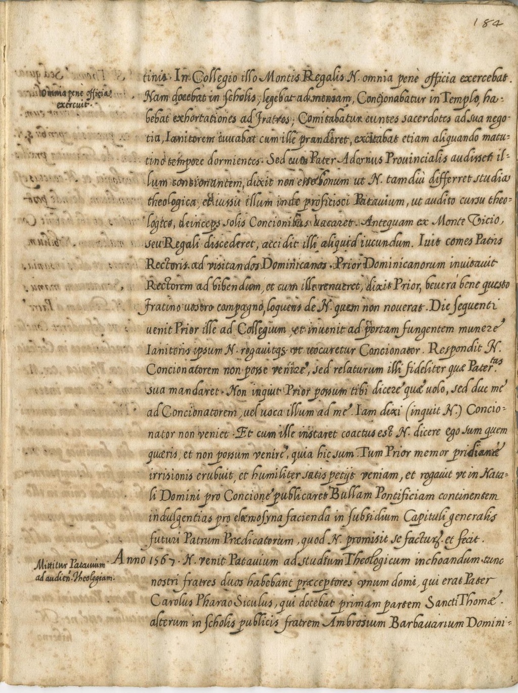 Anno 1567. N. venit Patavium ad studium Theologicum inchoandum tunc nostri fratres duos habebant praeceptores unum domi, qui erat Pater Carolus Pharao Siculus, qui docebat primam partem Sancti Thomae. Alterum in scholis publicis fratrem Ambrosium Barbavarium Domini-