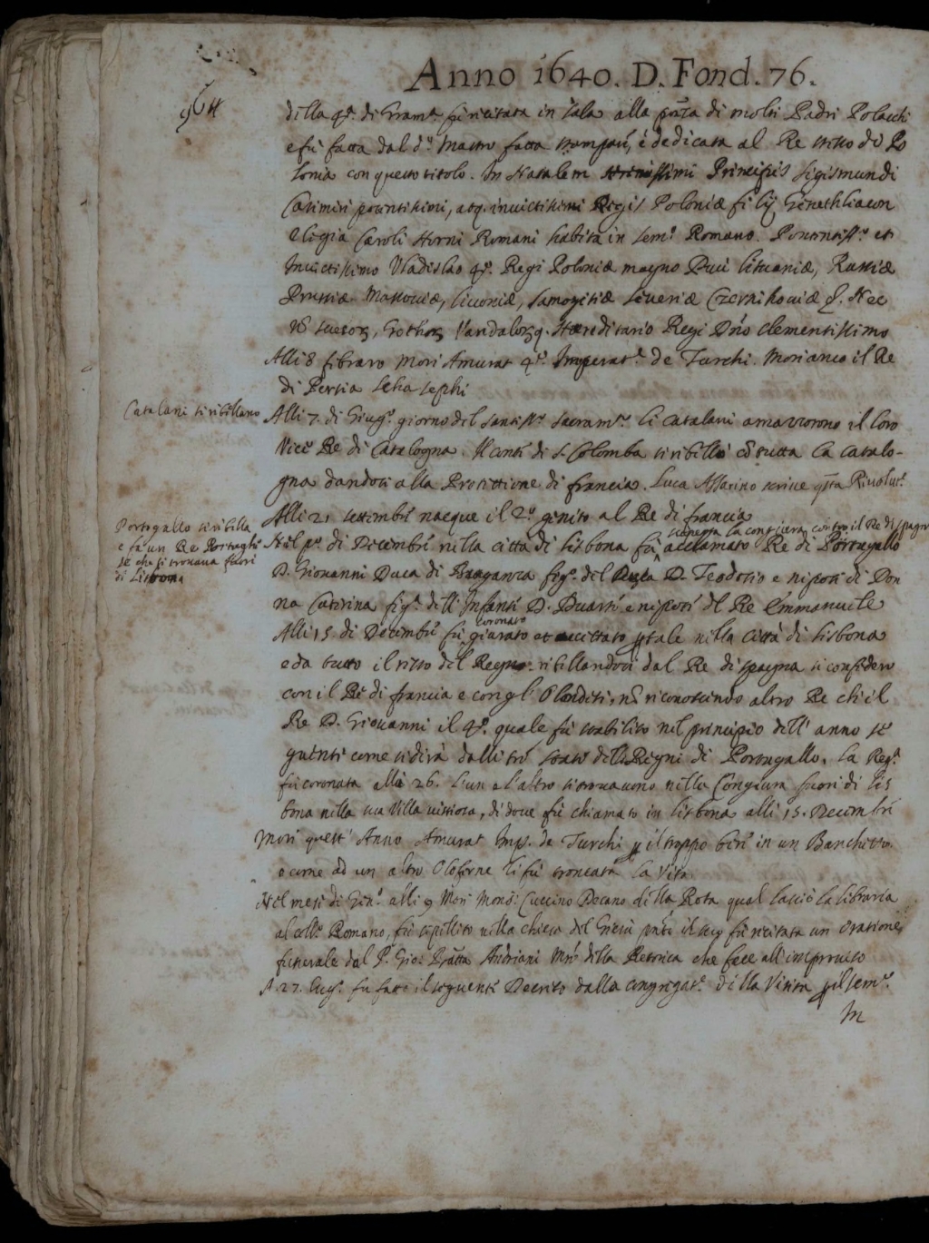 nella sua Villa uissiosa, di dove fu chiamato in Lisbona alli 15 Decembre