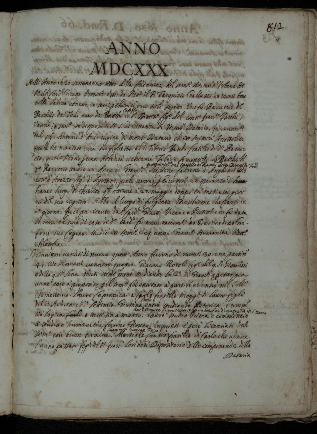 Nell'Anno 1630 sessantesimo sesto dalla fondazione della fondazione del seminario settimo d'urbano 8°