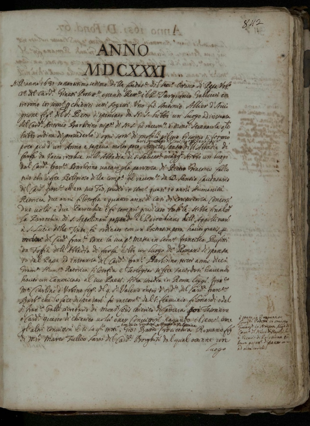 Nell'anno 1631 sessantesimo settimo dalla fondazione del Seminario Ottavo di Papa Urbano