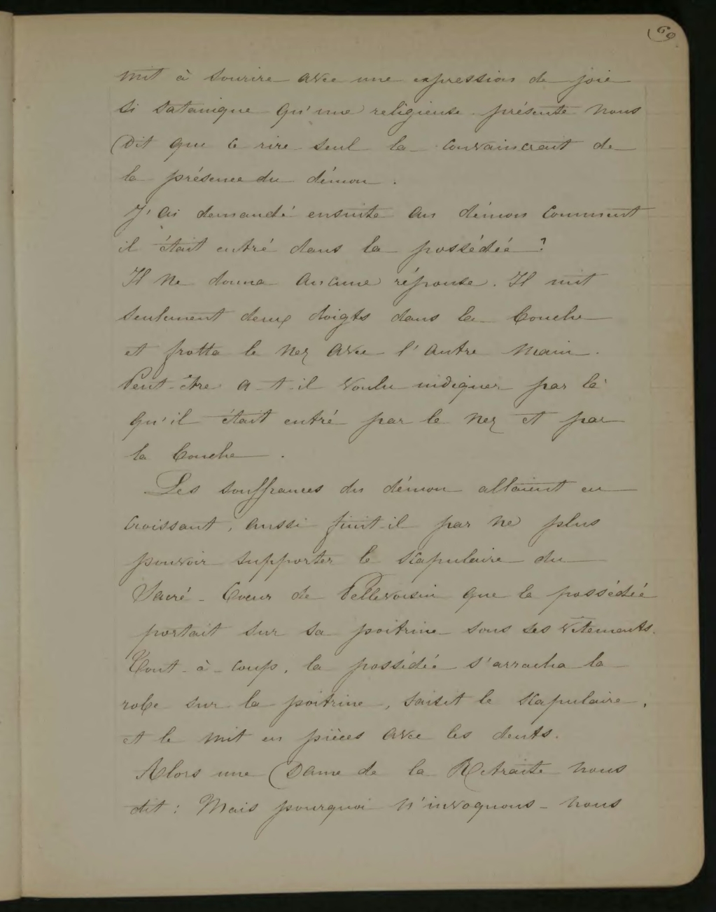 mit à sourire avec une expression de joie si satanique qu’une religieuse présente nous dit que ce rire seul la convaincrait de la présence du démon.