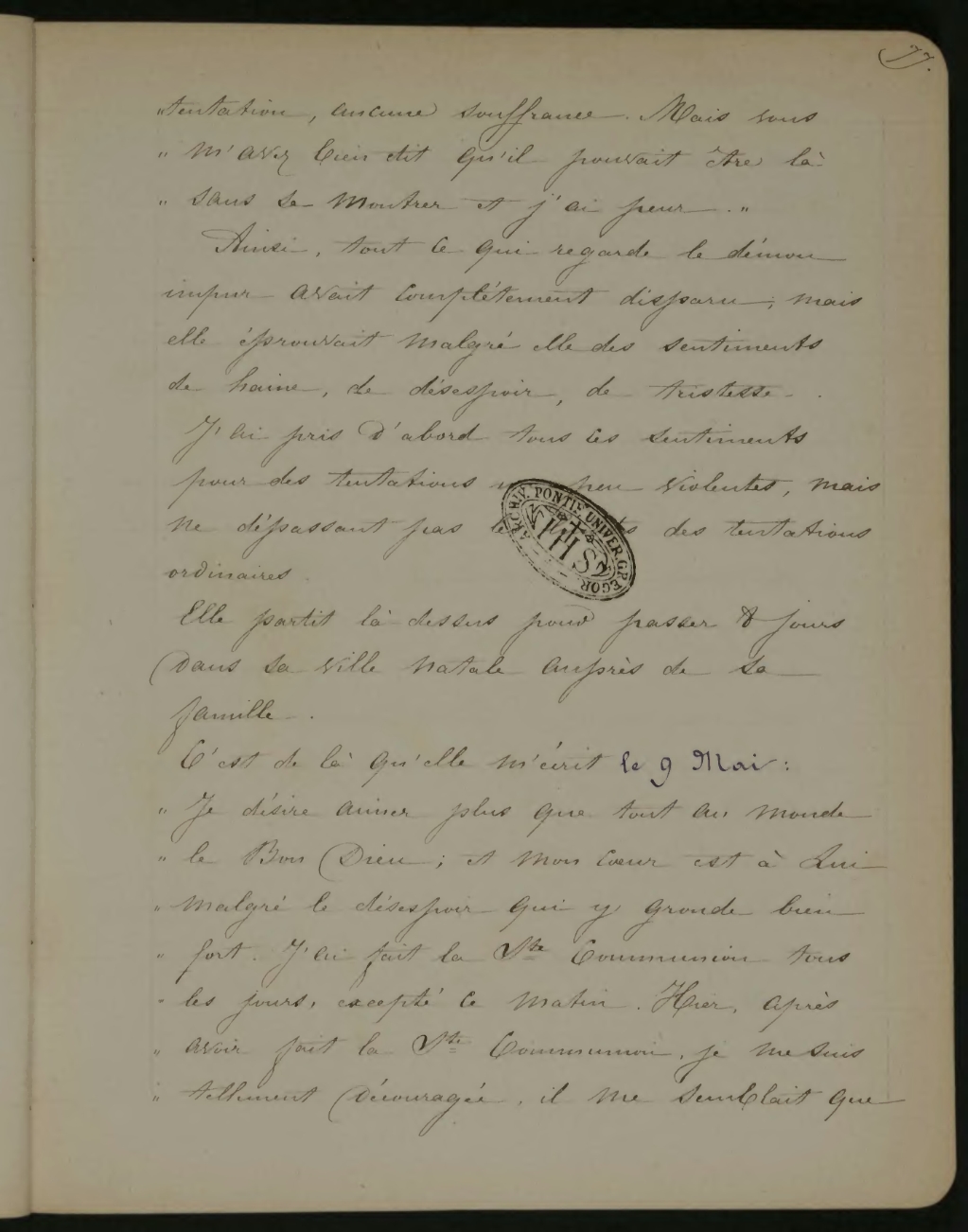 C’est de là qu’elle m’écrit le 9 Mai:
