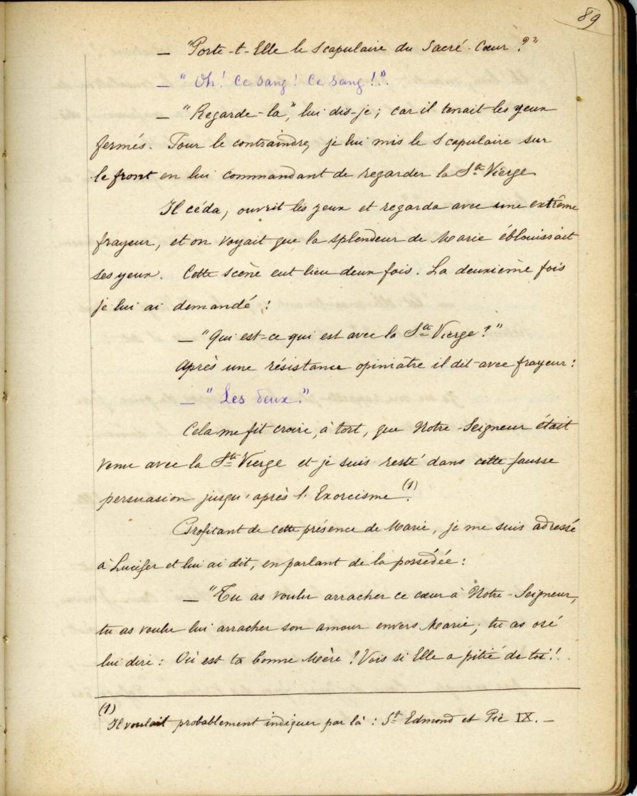 Cela me fit croire, à tort, que notre Seigneur était venu avec la Ste Vierge et je suis resté dans cette fausse persuasion jusqu’après l’Exorcisme(1).