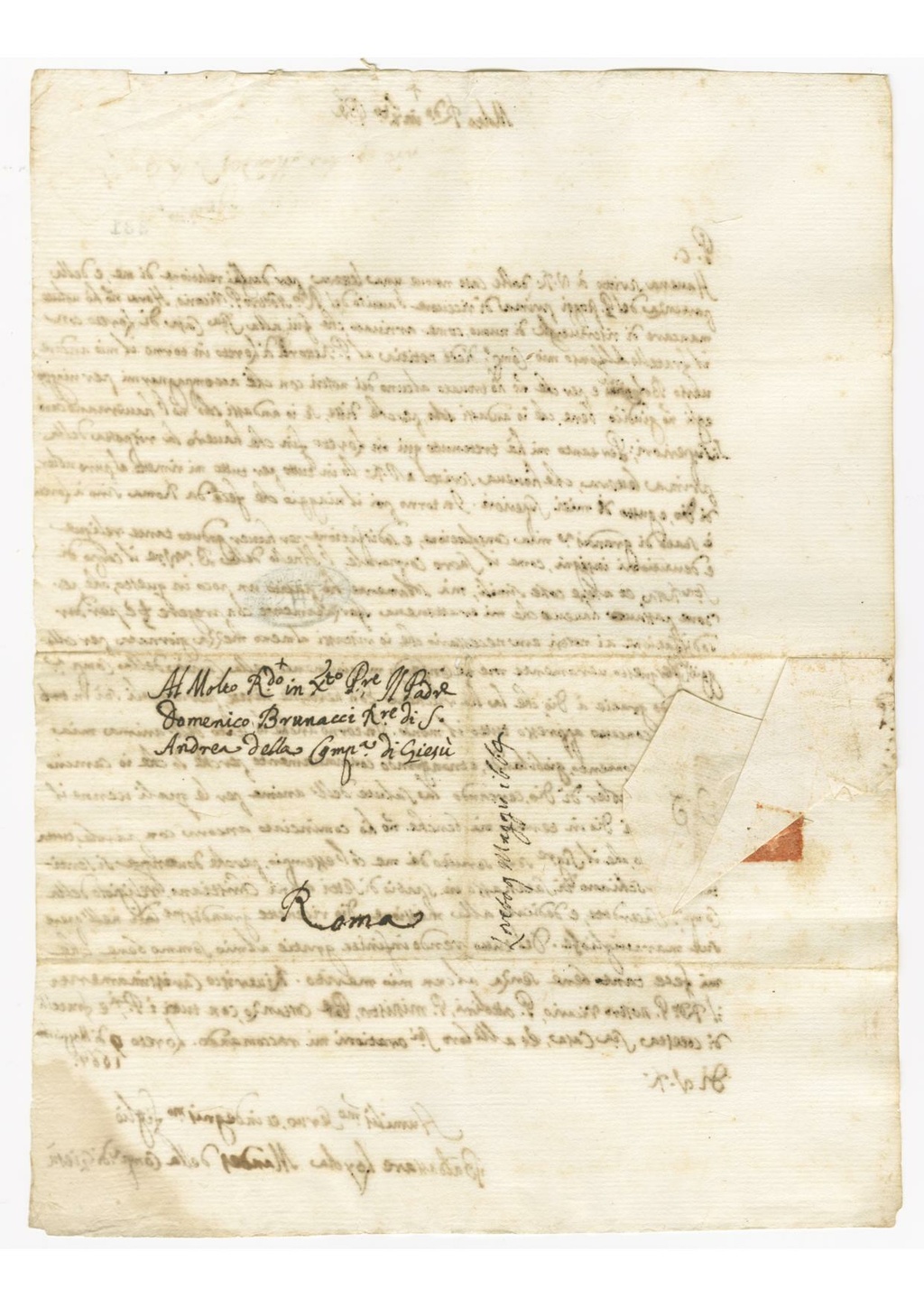 Al Molto Reverendo in Xto Padre, il Padre Domenico Brunacci Rettore di Sant' Andrea della Compagnia di Giesù Roma