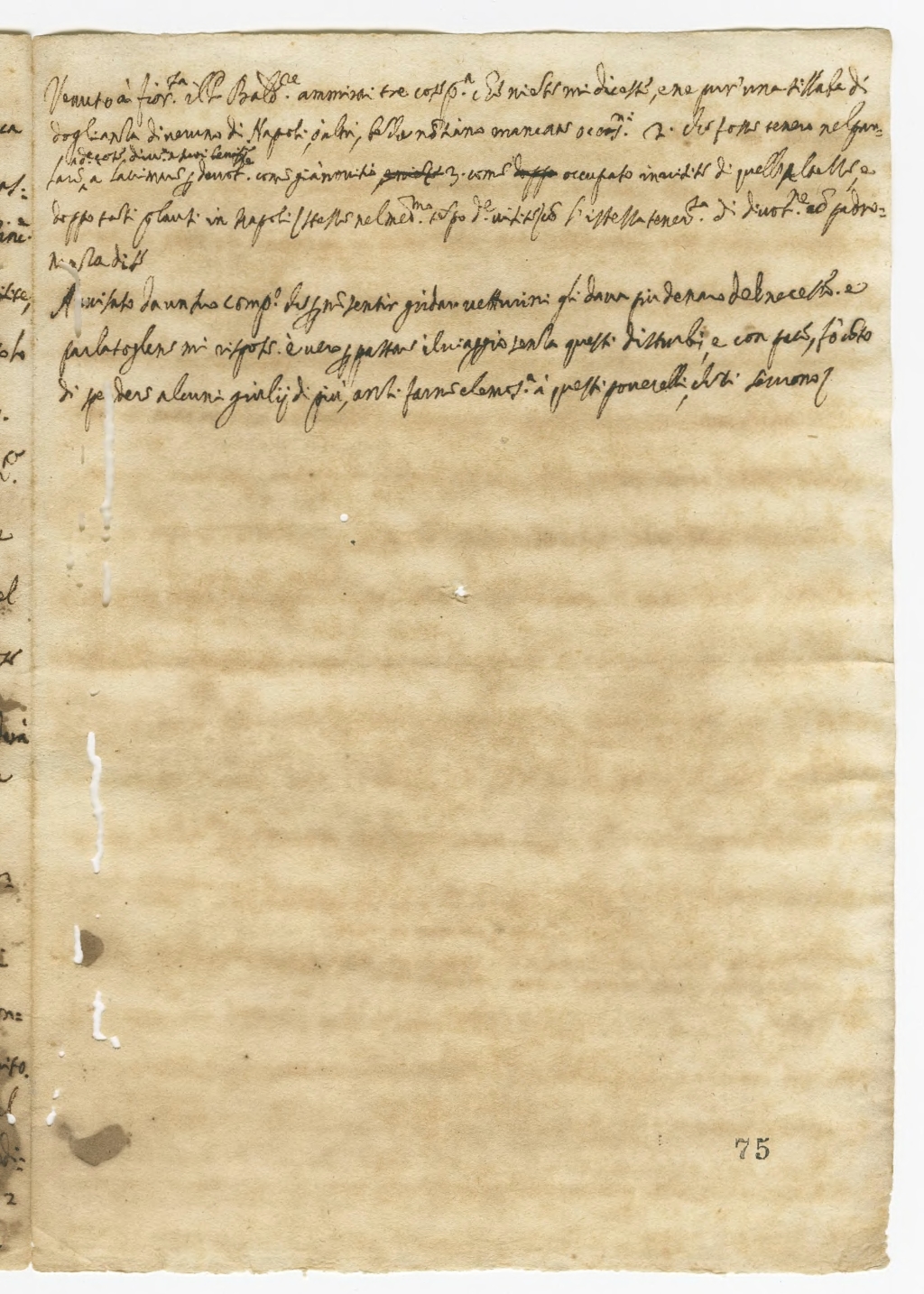 Venuto à Fiorenza il P. Baldassare ammirai tre cosse Prima e che niente mi dicesse e ne pur'una sillaba di doglianza di nesuno di Napoli, ò altri, benche nonsino mancava occasioni 2. Che fosse sereno nel parlare di cose divine a suoi penitenti a lacrime per devotione come già novitio 3. Come occupato in di quella e doppo tanti plausi in Napoli (stesse nel medessimo tempo de ) ed l'istessa tenerezza di divotione e padronanza di sé.