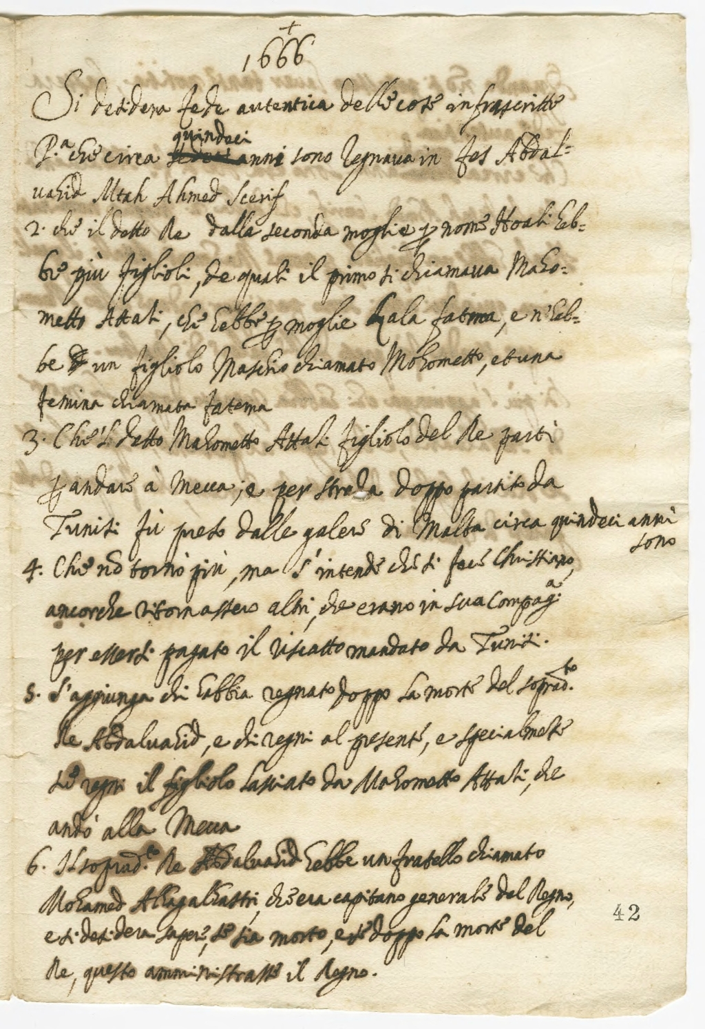 5. L'aggiunga chi habbia regnato doppo la morte del sopradetto Re Abdaluahid, e chi regni al presente, e specilamente se regni il figliolo lasciato da Mahometto Attazi, che andò alla Mecca.