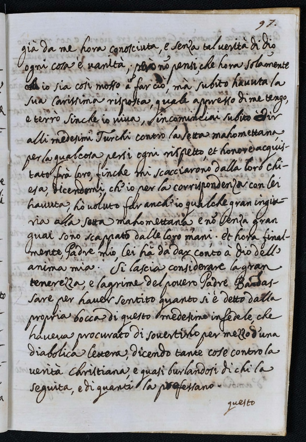mente, Padre mio, lei hà da dar conto à Dio dell'