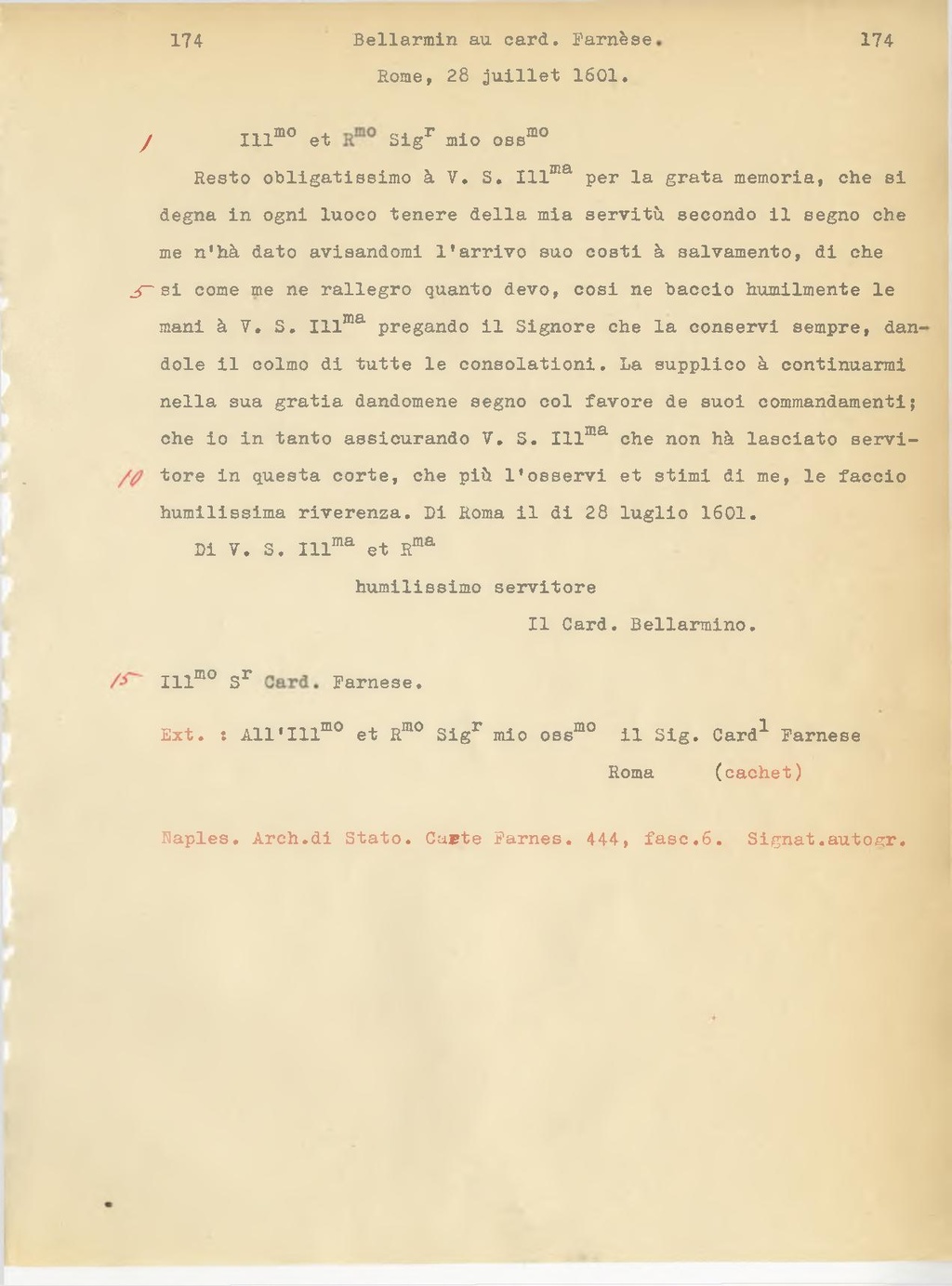 Ext.: All'Ill.mo e R.mo Sig.r mio oss.mo il Sig. Card.l Farnese