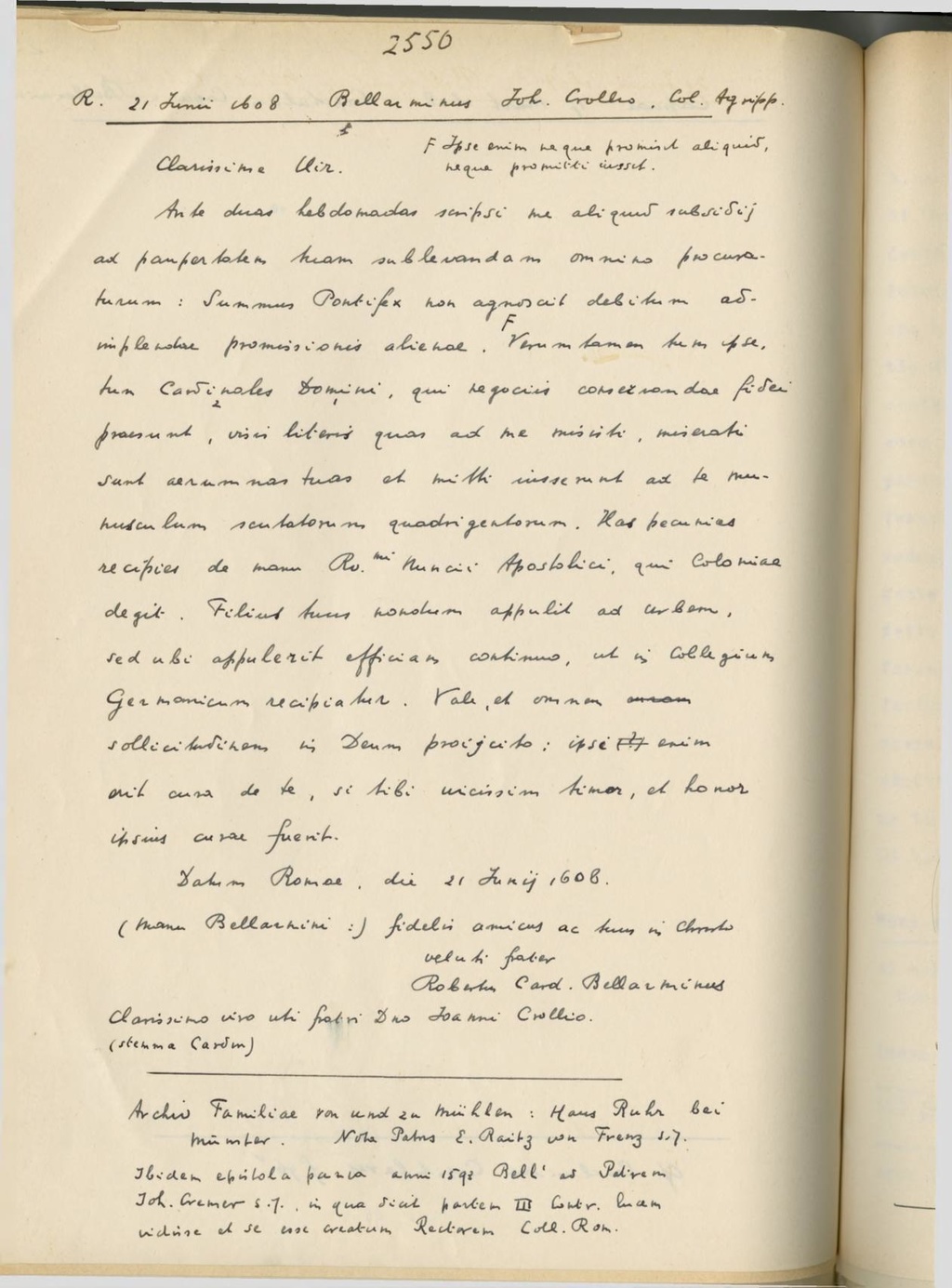 Datum Romae die 21 Iunij 1608