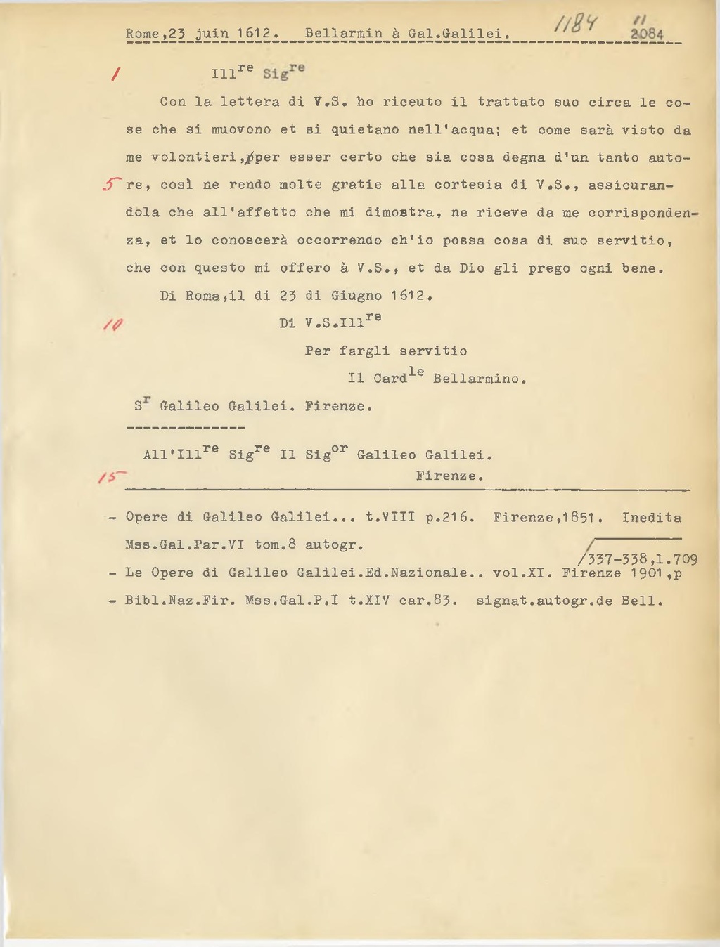 S.r Galileo Galilei. Firenze.