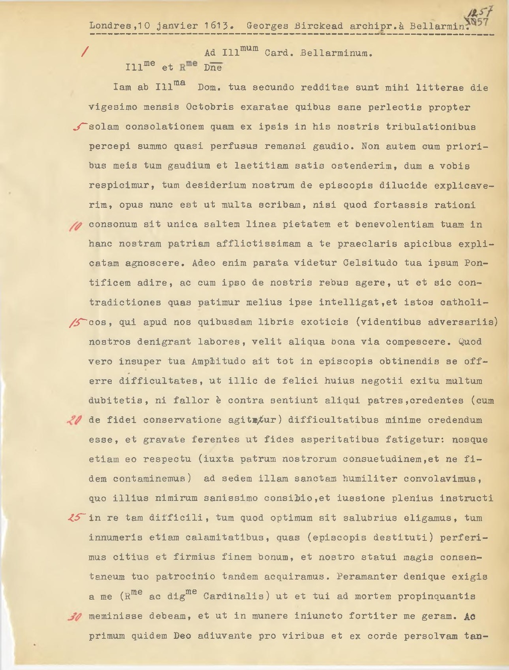 Iam ab Ill.ma Dom. tua secundo redditae sunt mihi litterae die vigesimo mensis Octobris exaratae quibus sane perlectis propter solam consolationem quam ex ipsis in bis nostris tribulationibus percepi summo quasi perfusus remansi gaudio. Non autem cum prioribus meis tum gaudium et laetitiam satis ostenderim, dum a vobis respicimur, tum desiderium nostrum de episcopis dilucide explicaverim, opus nunc est ut multa scribam, nisi quod fortassis rationi consonum sit unica saltem linea pietatem et benevolentiam tuam in hanc nostram patriam afflictissimam a te praeclaris apicibus explicatam agnoscere. Adeo enim parata videtur Celsitudo tua ipsum Pontificem adire, ac cum ipso de nostris rebus agere, ut et sic contradictiones quas patimur melius ipse intelligat,et istos catholicos, qui apud nos quibusdam libris exoticis (videntibus adversariis) nostros denigrant labores, velit aliqua bona via compescere. Quod vero insuper tua Amplitudo ait tot in episcopis obtinendis se offerre difficultates, ut illic de felici huius negotii exitu multum dubitetis, ni fallor è centra sentiunt aliqui patres,credentes (cum de fidei conservatione agitur) difficultatibus minime credendum esse, et gravate ferentes ut fides asperitatibus fatigetur: nosque etiam eo respectu (iuxta patrum nostrorum consuetudinem, et ne fidem contaminemus) ad sedem illam sanctam humiliter convolavimus, quo illius nimirum sanissimo consilio, et iussione plenius instructi in re tam difficili, tum qund optimum sit salubrius eligamus, tum innumeris etiam calamitatibus, quas (episcopis destituii) perferimus citius et firmius finem bonum, et nostro statui magis consentaneum tuo patrocinio tandem acquiramus. Peramanter denique exigis a me (R.me ac dig.me Cardinalis) ut et tui ad mortem propinquantis meminisse debeam, et ut in munere iniuncto fortiter me geram. Ac primum quidem Deo adiuvante pro viribus et ex corde persolvam tanquam
