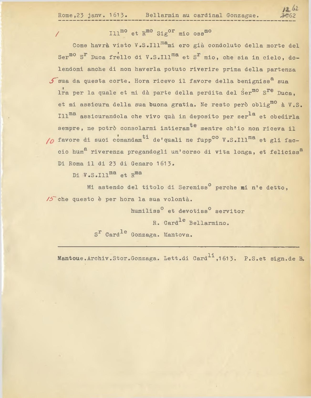 R. Card.le Bellarmino.