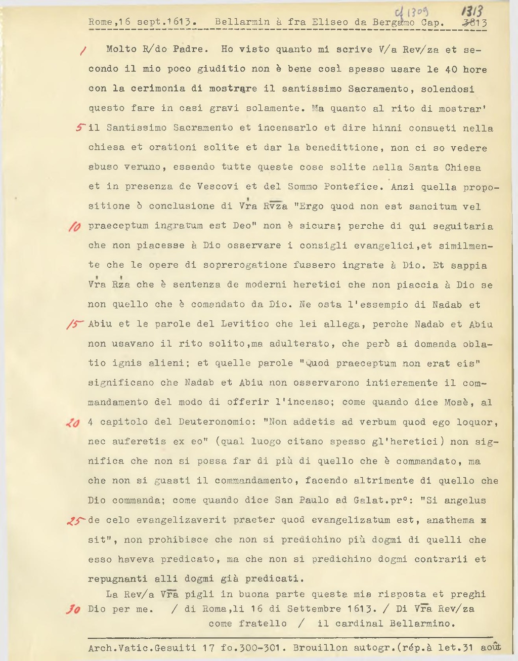 di Roma,li 16 di Settembre 1613.