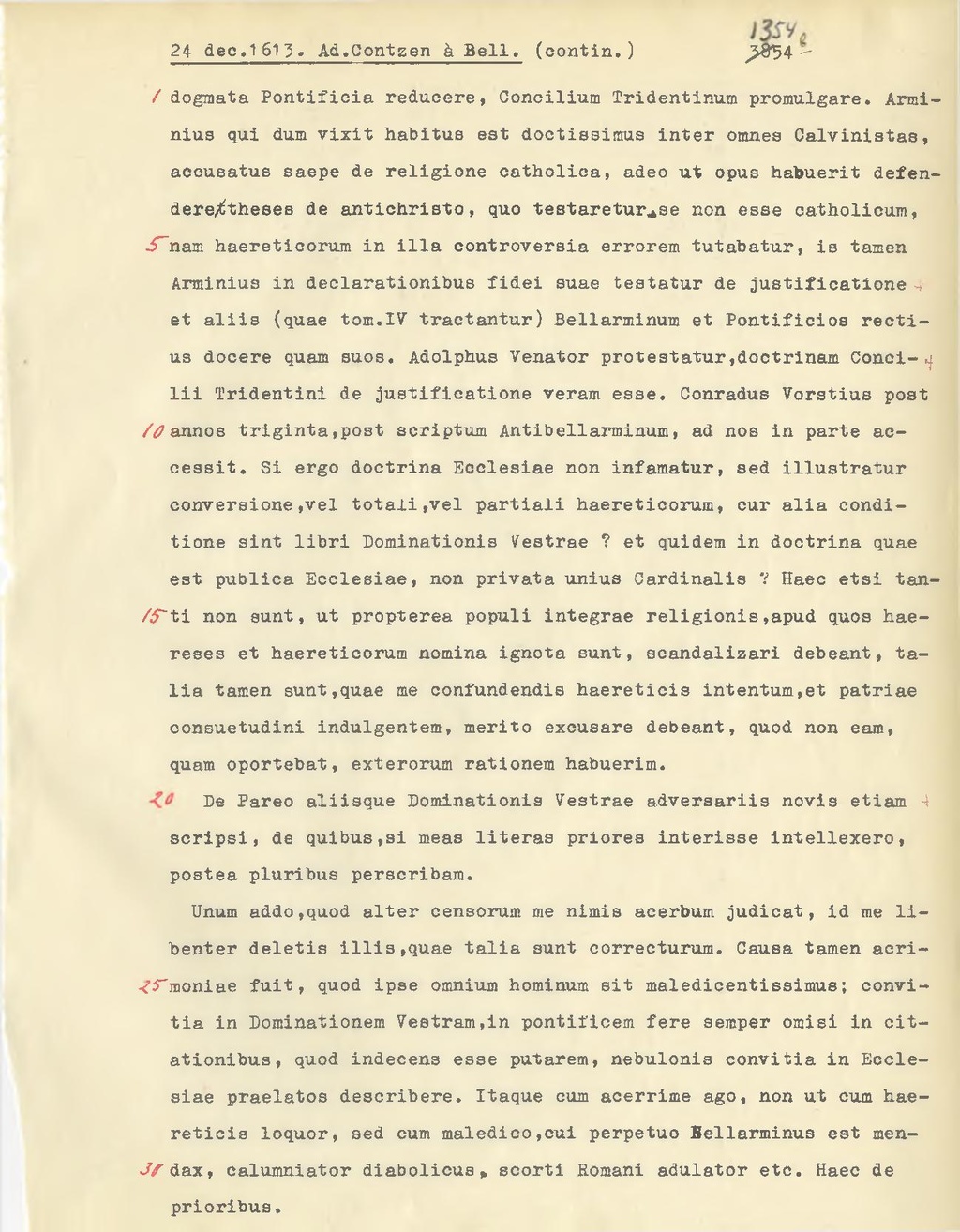dogmata Pontificia reducere, Concilium Tridentinum promulgare. Arminius qui dum vixit habitus est doctissimus inter omnes Calvinistas, accusatus saepe de religione catholica, adeo ut opus habuerit defendere theses de antichristo, quo testaretur se non esse oatholicum, nam haereticorum in illa controversia errorem tutabatur, is tamen Arminius in declarationibus fidei suae testatur de justificatione et aliis (quae tom.IV tractantur) Bellarminum et Pontificios rectius docere quam suos. Adolphus Venator protestatur, doctrinam Concilii Tridentini de justificatione veram esse. Conradus Vorstius post annos triginta, post scriptum Antibellarminum, ad nos in parte ac cessit. Si ergo doctrina Ecclesiae non infamatur, sed illustratur conversione, vel totali, vel partiali haereticorum, cur alia conditione sint libri Dominationis Vestrae? et quidem in doctrina quae est publica Ecclesiae, non privata unius Cardinalis? Haec etsi tanti non sunt, ut propterea populi integrae religionis, apud quos haereses et haereticorum nomina ignota sunt, scandalizari debeant, talia tamen sunt, quae me confundendis haereticis intentum, et patriae consuetudini indulgentem, merito excusare debeant, quod non eam, quam oportebat, exterorum rationem habuerim.