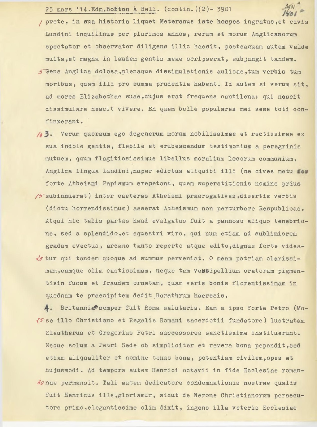 4. Britanniae semper fuit Roma salutaris. Eam a ipso forte Petro (Mose illo Christiano et Regalis Romani sacerdotii fundatore) lustratam Eleutherus et Gregorius Petri successores sanctissime instituerunt. Neque solum a Petri Sede ob simpliciter et revera bona pependit, sed etiam aliqualiter et nomine tenus bona, potentiam civilem, opes et hujusmodi. Ad tempora autem Henrici octavii in fide Ecclesiae romannae permansit. Tali autem dedicatore condemnationis nostrae qualis fuit Henricus ille, gloriamur, sicut de Nerone Christianorum persecutore primo, elegantissime olim dixit, ingens illa veteris Ecclesiae