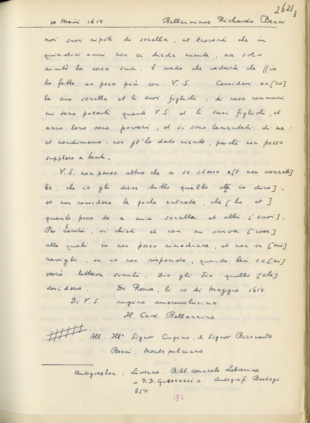 Di Roma, li 10 Maggio 1614