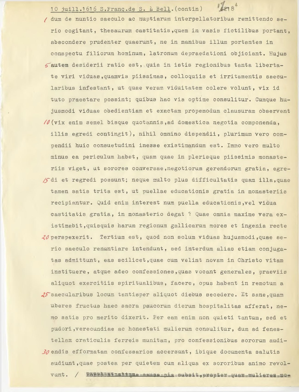 dum de nuntio saeculo ac nuptiarum interpellatoribus remittendo serio cogitant, thesaurum castitatis, quem in vasis fictilibus portant, abscondere prudenter quaerunt, ne in manibus illum portantes in conspectu filiorum hominum, latronnm depraedationi objiciant. Hujus Tautem desiderii ratio est, quia in istis regionibus tanta libertate viri viduas, quamvis piissimas, colloquiis et irritamentis saecularibus infestant, ut quae veram viduitatem colere volunt, vix id tuto praestare possint; quibus hac via optime consulitur. Cumque hujusmodi viduae obedientiam et exactam propemodum clausuram observent (vix enim semel bisque quotannis, ad domestica negotia componenda, illis egredi contingit), nihil omnino dispendii, plurimum vero compendii huic consuetudini inesse existimandum est. Immo vero multo minus ea periculum habet, quam quae in plerisque piissimis monasteriis viget, ut sorores conversae, negotiorum gerendorum gratia, egredi et regredi possunt; neque multo plus difficultatis quam illa, quae tamen satis trita est, ut puellae educationis gratia in monasteriis recipiantur. Quid enim interest num puella educationis,vel vidua castitatis gratia, in monasterio degat? Quae omnia maxime vera existimabit, quisquis harum regionum gallicarum mores et ingenia recte? perspexerit. Tertium est, quod non solum viduas hujusmodi, quae se rio saeculo renuntiare intendunt, sed interdum alias etiam conjugatas admittunt, eas scilicet, quae cum velint novam in Christo vitam instituere, atque adeo confessiones,quas vocant generales, praeviis aliquot exercitiis spiritualibus, lacere, opus habent in remotum a saecularibus locum tantisper aliquot diebus secedere. Et sane,quam uberes fructus haec sacra paucorum dierum hospitalitas afferai, nemo satis pro merito dixerit. Per eam enim non quieti tantum, sed et pudori, verecundiae ac honestati mulierum consulitur, dum ad fenestellam craticulis ferreis munitam, pro confessionibus sororum audiendis efformatam confessarios accersunt, ibique documenta salutis audiunt,quae postea per quietem cum aliqua ex sororibus animo revolvunt.