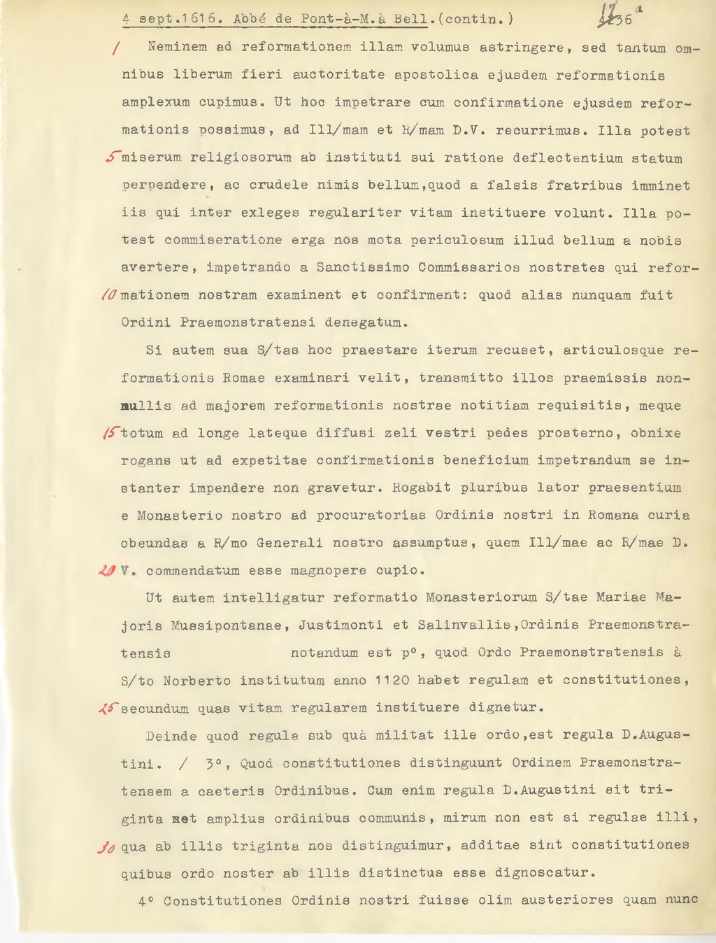 Ut autem intelligatur reformatio Monasteriorum S/tae Mariae Majoris Mussipontanae, Justimonti et Salinvallis, Ordinis Praemonstratensis notandum est p°, quod Ordo Praemonstratensis à S.to Norberto institutum anno 1120 habet regulam et constitutiones, secundum quas vitam regularem instituere dignetur.