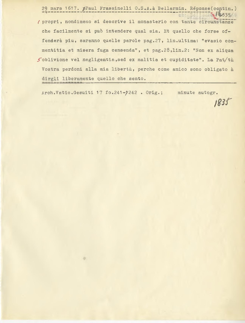 propri, nondimeno si descrive il monasterio con tante circunstanze che facilmente si può intendere qual sia. Et quello che forse offenderà piu, saranno quelle parole pag. 27, lin. ultima: "evasio commentitia et misera fuga censenda", et pag. 28, lin. 2: "Non ex aliqua oblivione vel negligentia, sed ex malitia et cupiditate". La Pat.tà Vostra perdoni alla mia libertà, perche come amico sono obligato à dirgli liberamente quello che sento.