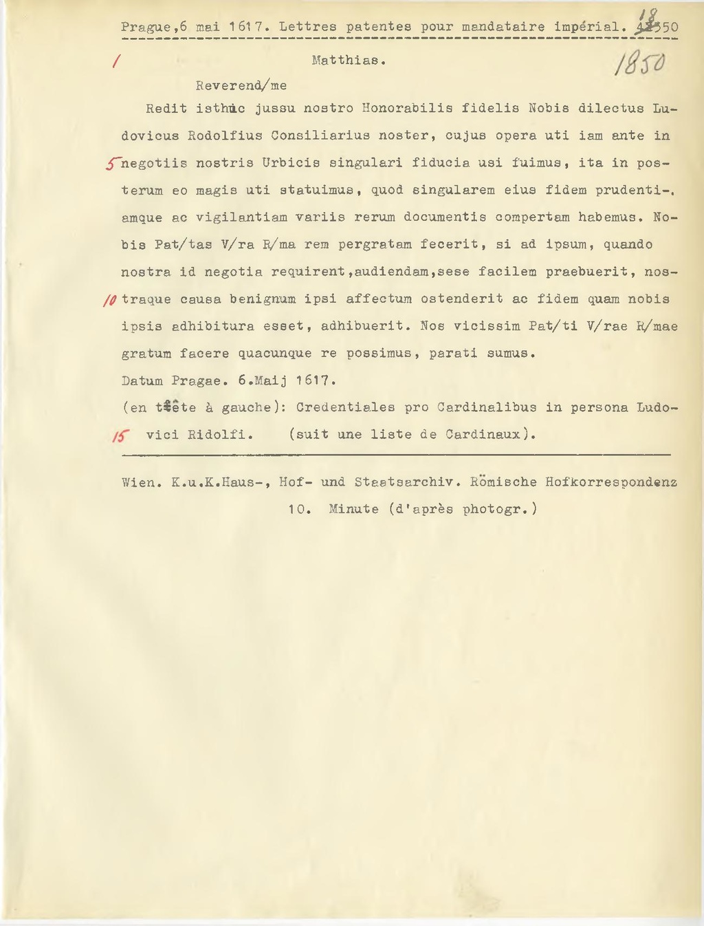 (en tete à gauche): Credentiales pro Cardinalibus in persona Ludovici Ridolfi.