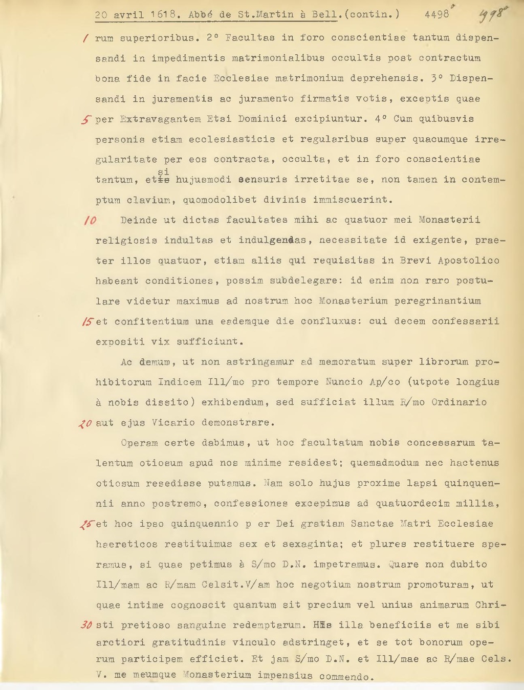 Deinde ut dictas facultates mihi ac quatuor mei Monasterii religiosis indultas et indulgendas, necessitate id exigente, praeter illos quatuor, etiam aliis qui requisitas in Brevi Apostolico habeant conditiones, possim subdelegare: id enim non raro postulare videtur maximus ad nostrum hoc Monasterium peregrinantium et confitentium una eademque die confluxus: cui decem confessarli expositi vix sufficiunt.