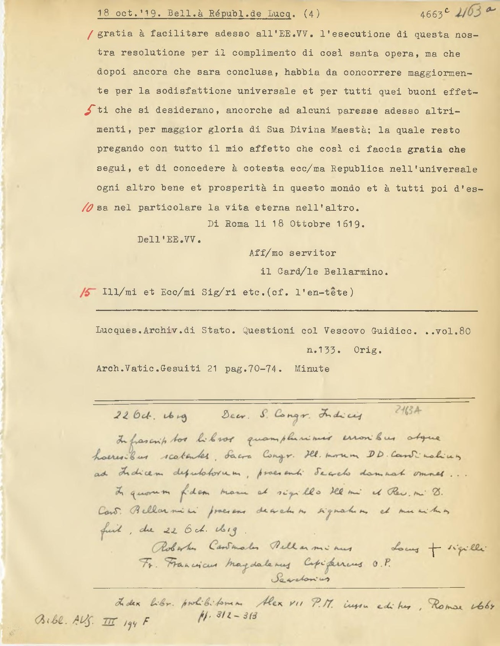 Di Roma li 18 Ottobre 1619.