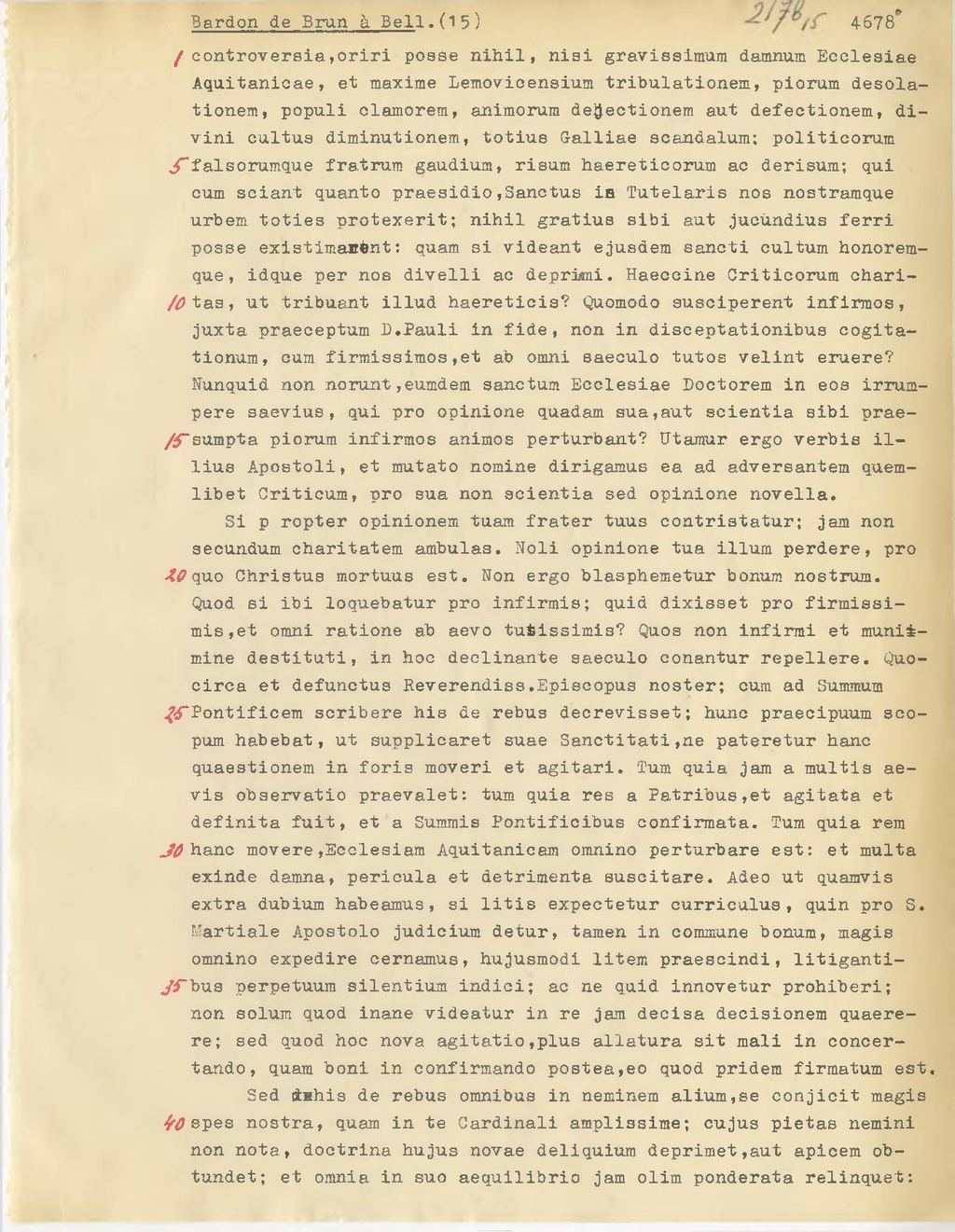 controversia, oriri posse nihil, nisi gravissimum damnum Ecclesiae Aquitanicae, et maxime Lemovicensium tribulationem, piorum desolationem, populi clamorem, animorum dejectionem aut defectionem, divini cultus diminutionem, totius Galline scandalum: politicorum falsorumque fratrum gaudium, risum haereticorum ac derisum; qui cum sciant quanto praesidio, Sanctus is Tutelaris nos nostramque urbem toties protexerit; nihil gratius sibi aut jucundius ferri posse existimarent: quam si videant ejusdem sancti cultum honoremque, idque per nos divelli ac deprimi. Haeccine Criticorum charitas, ut tribuant illud haereticis? Quomodo susciperent infirmos, juxta praeceptum D. Pauli in fide, non in disceptationibus cogitationum, cum firmissimos, et ab omni saeculo tutos velini eruere? Nunquid non norunt, eumdem sanctum Ecclesiae Doctorem in eos irrumpere saevius, qui pro opinione quadam sua, aut scientia sibi praesumpta piorum infirmos animos perturbant? Utamur ergo verbis illius Apostoli, et mutato nomine dirigamus ea ad adversantem quemlibet Criticum, pro sua non scientia sed opinione novella.