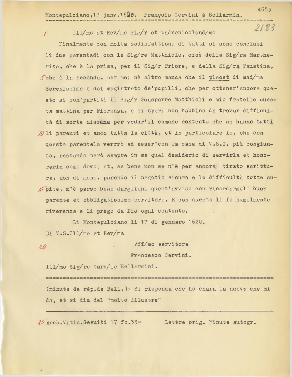 Di Montepulciano li 17 di gennaro 1620.