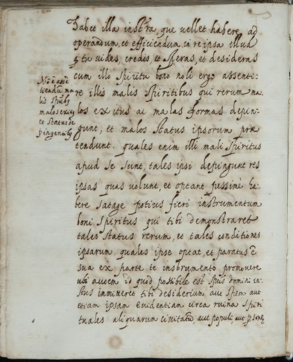 habet illa instrumenta, que vellet habere, ad operandum, et efficiendum in re ipsa illud quod tu vides, credis, et speras, et desideras cum illo spiritu bono noli ergo