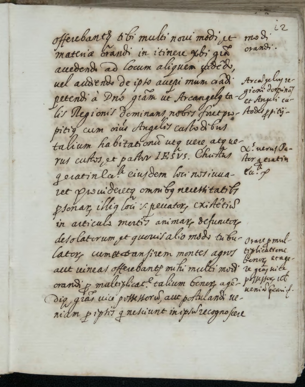 offerebanturque tibi multi novi[1] modi modi orandi. et materiae orandi in itinere verbi gratia accedendo ad locum aliquem videndo, vel audiendo de ipso accepi[2] modum orandi petendi[3] a Domino gratiam ut Archangelus Arcangelus regioni dominans et Angeli custodes propitii. talis Regionis dominans[4], nobis foret propitius cum omnibus Angelis custodibus talium habitationum[5] utque vere, atque verus[6] custos et pastor Iesus. Christus Christus verus Pastor qui erat in ecclesia. qui erat in ecclesia eiusdem loci nos iuvaret provideretque omnibus necessitatibus personarum illius loci scilicet[7] peccatorum existentium in articulo mortis animarum defunctorum desolatorum et quovis alio modo tribulatorum cum et[8] transirem montes agros aut vineas offerebantur mihi multi modi orandi Orare pro multiplicatione bonorum et agere gratias vice possessorum ut veniam precari. pro multiplicatione talium bonorum agendique gratias vice possessorum, aut postulandi veniam pro ipsis qui nesciunt in ipsum[9] recognoscere[10]