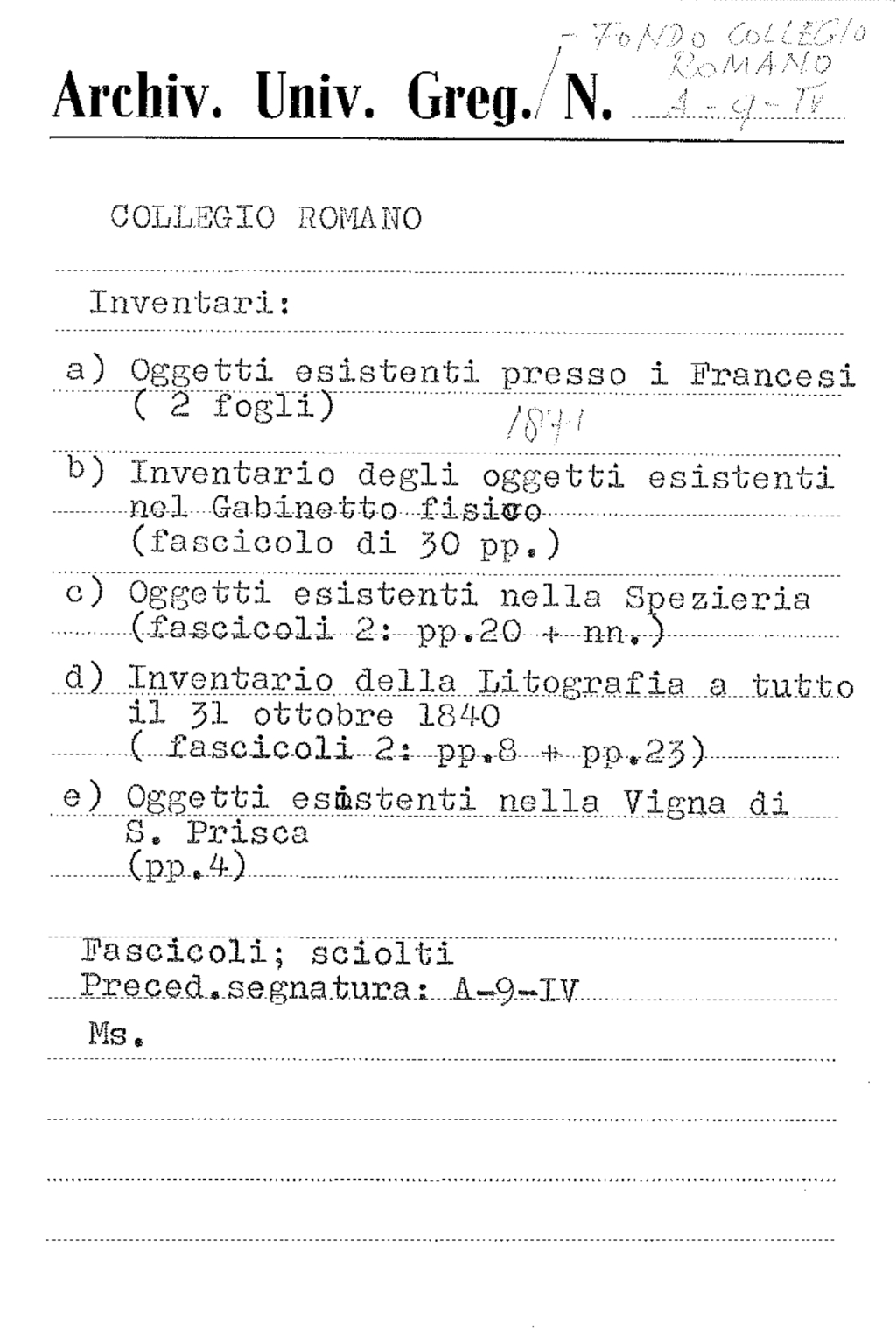 Scheda di catalogazione Manus Online: