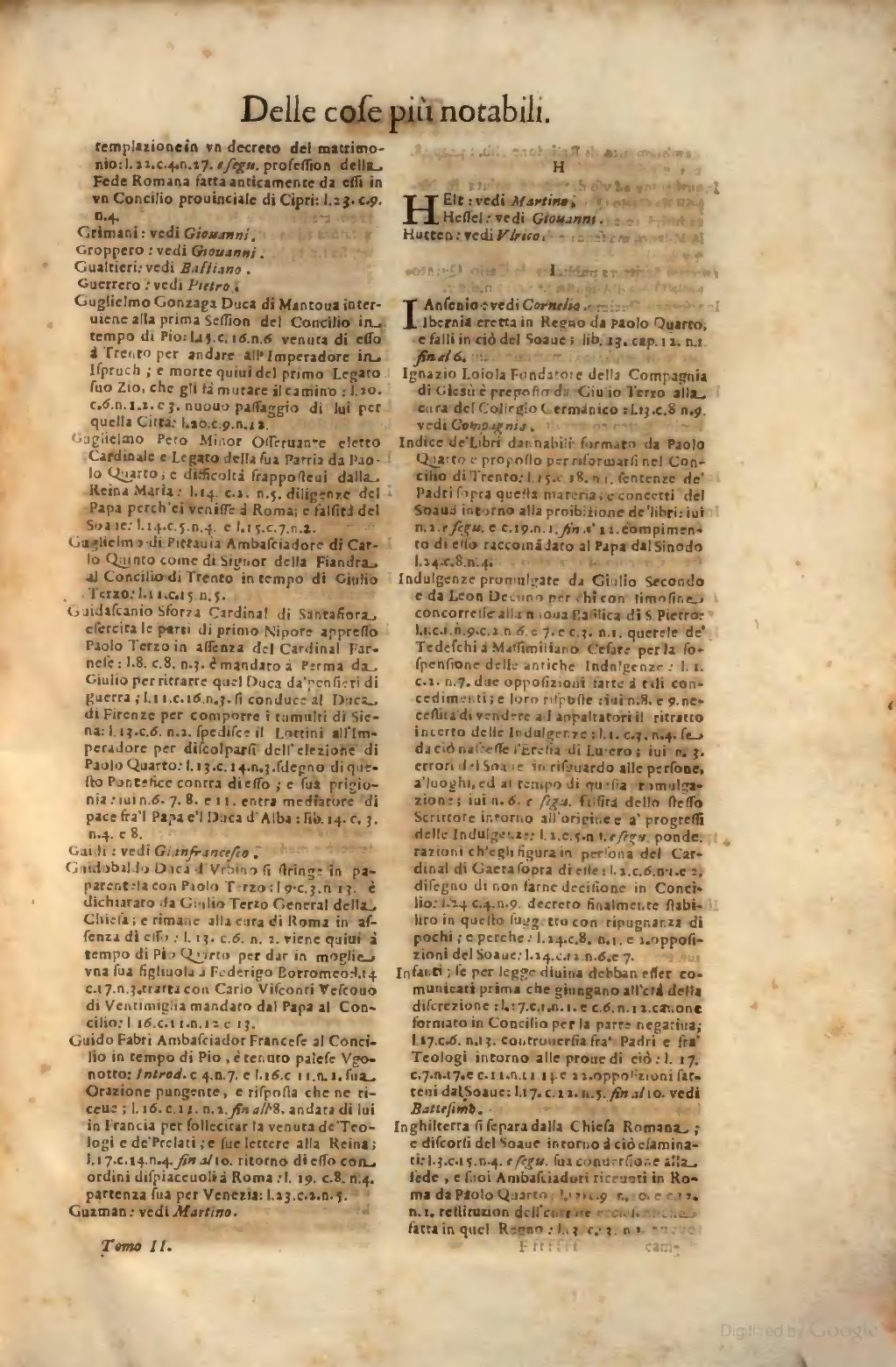 Indice de' Libri dannabili formato da Paolo Quarto e proposto per riformarsi nel Concilio di Trento; l. 15. c. 18. n. 1. sentenze de' Padri sopra questa materia; e concetti del Soave intorno alla proibizione de' libri; ivi. n. 2. e segu. e c. 19. n. 1. fin a' 12. compimento di esso raccomandato al Papa dal Sinodo l. 24. c. 8. n. 4.