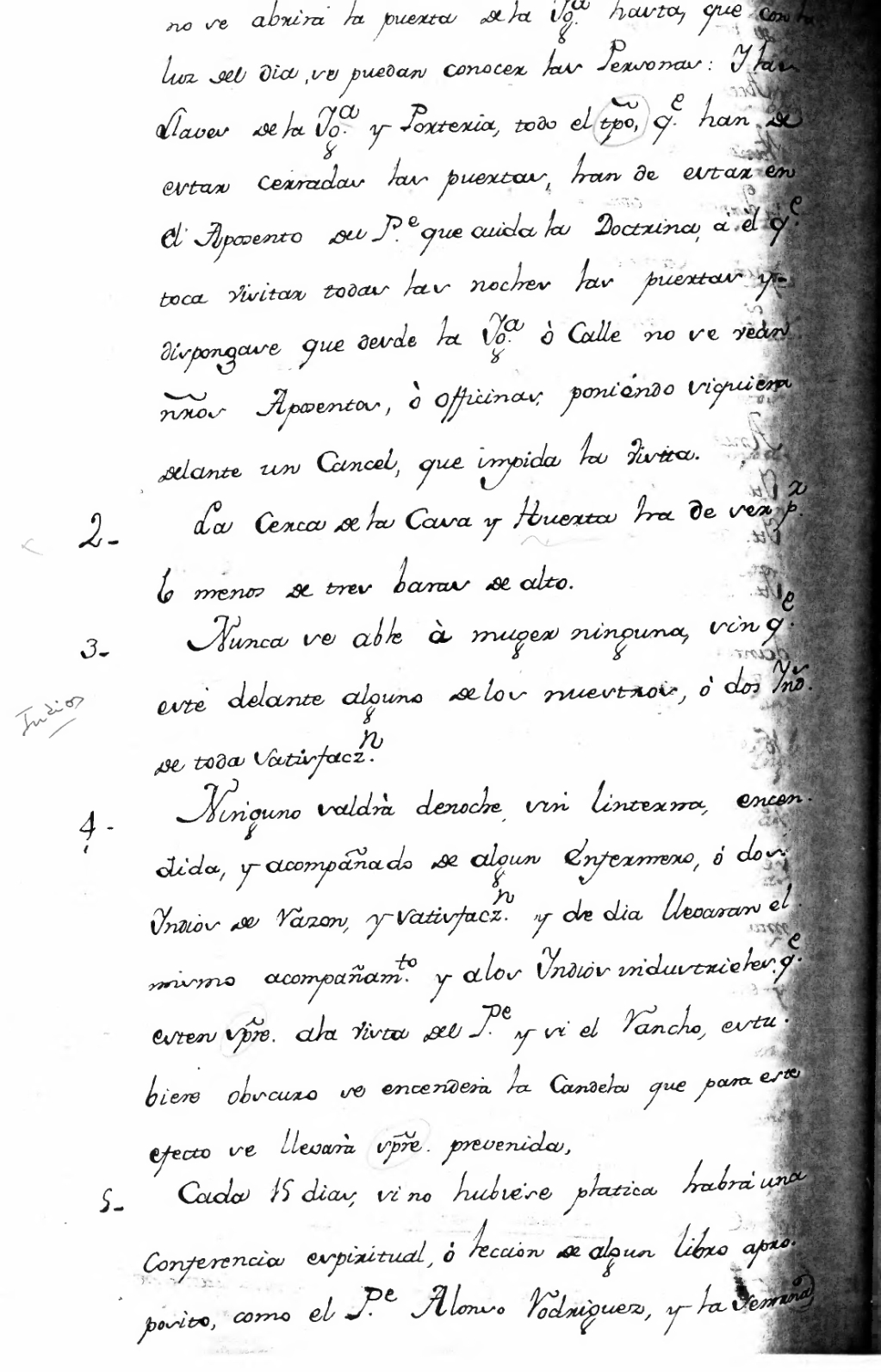 3. Nunca se able a muger ninguna sin q[u]e esté delante alguno de los nuestros o dos ind[io]s de toda satisfacz[ió]n[3].