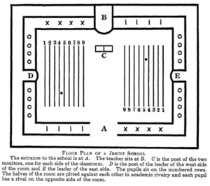Nell'insegnamento erano previsti una serie di esercizi in cui due antagonisti, due squadre o due studenti (aemuli) si confrontavano per ripetere, esporre e correggere la lezione del maestro[1]. La classe si divideva in decurie, all'interno delle quali c'era un rapporto gerarchico le cui denominazioni erano tratte dalla tradizione dell'antica Roma.
