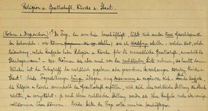 Molta di questa documentazione ruota intorno al tema ''Die Konkordatsfrafge''. A un livello più astratto si potrebbe dire che a partire da questi documenti è possibile osservare in quale modo sia stato costruito il rapporto tra ''religione'' e ''società''. Potrebbe essere compito della ricerca rendere più intelligibile questa relazione con una adeguata teoria della società. | Molta di questa documentazione ruota intorno al tema ''Die Konkordatsfrafge''. A un livello più astratto si potrebbe dire che a partire da questi documenti è possibile osservare in quale modo sia stato costruito il rapporto tra ''religione'' e ''società''. Potrebbe essere compito della ricerca rendere più intelligibile questa relazione con una adeguata teoria della società. | ||
